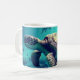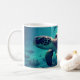 Diese Tasse hat eine Meeresschildkröte darauf.