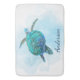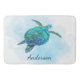 Diese personalisierte Badematte passt zu den Handtüchern der Meeresschildkröte und bietet farbenfrohe Meeresschildkröten mit abstrakten Meereswellen im Hintergrund.