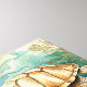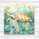 Eine anmutige Aquarellschildkröte gleitet durch eine Unterwasserwelt, ihre Muschel ist in warmen Erdbraun, Röhren und Orange gestrichen. Blühende Algen in reichen aquamarinen, aqua und Blues schlängeln sich sanft um sie herum und schaffen eine ruhige Ozeanszene. Die weiche Aquarellstruktur und die beruhigende Farbpalette machen dieses Stück friedlich und faszinierend.