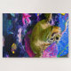 Schöne Meeresschildkröte schwimmt zwischen tropischen Fischen in der Nähe eines farbenfrohen Riffs.