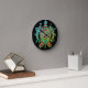 Mosaikschildkröte in den Farben Türkis, Rot, Grün, Blau und Gold auf einer schwarzen Uhr.