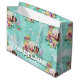 Eine niedliche Meerjungfrau mit dunklem Haar und ein Unterwasserdesign mit Korallengarten, Perlen und Sternenfisch bilden die Grundlage dieses Geschenksackdesigns. Aus einer Reihe von Mermaid-Produkten von Chessie's Fine Designs.