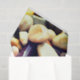 Zierpapier mit dem Bild von blauem Meerglas auf einem Kieselstrand.