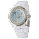 Kristall weiße Emaille eWatch mit einem Bild von schönen Edelsteinen, Muscheln und einer goldenen Meerjungfrau auf hellblau. Sehen Sie sich die gesamte Gemstones & Medallions Watch-Sammlung im ACCESSORIES-Bereich an.