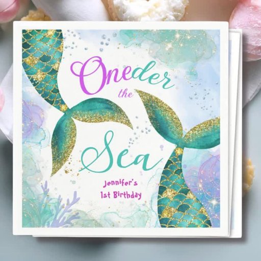 Oneder The Sea! Teal Mermaid Girls 1st Birthday Designt von H-Art Studio Design