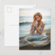 Meerjungfrau am Strand mit Muschel Feiertagspostkarte