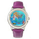 Kinderuhr aus Edelstahluhr mit lila Lederarmband