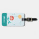 Dieser niedliche Gepäckumbau ist für ein Kind ideal, das Liebemeerjungfrauen und Seegeschöpfe. Er kennzeichnet einen niedlichen Meerjungfraucharakter, der einen Ballon mit einer Fischform und -blasen herum schwimmen hält. Die Kamm-Muschelgrenze gibt die Idee der Wellen. Fügen Sie den Namen des Kindes für eine persönliche Touch hinzu. Mehr Informationen können der Rückseite hinzugefügt werden.