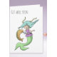 Meerjungfrau mit gebrochenem Arm und Fisch wird ba Karte