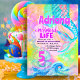 Ein einfaches, modernes Design mit einer Aquarell Mermaid Pool Party Pink Mermaid Einladung Birthday Party - rosa lila COLORFUL Meer Einladung Geburtstagsfeier mit Familie und Freund für Frauen und Mädchen .