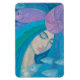 Kunstwerk mit dem Titel "Die Perle". Wunderschöne Meerjungfrau-Prinzessin mit blauen Haaren, die von etwas träumt, blauen, rosa und violetten Fischen, die neben ihr schwimmen. Blau, Rosa und Minze. Surreale Kunst, Unterwasserfantasie, pastellfarbene Malerei. Weichpasten auf Papier, 50 x 60 cm (20" x 24"), 2015 © Clipso-Callipso / Julia Khoroshikh
