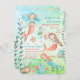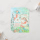 Eine Aquarellmalerei malte die Party Einladung von Meerjungfrauen unter Wasser, umgeben von einem Seepferd, Muscheln, Algen und Seestern.