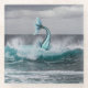 Untersetzer mit dem Bild einer Meerjungfrau, die in Blau, Grün und Grau taucht.