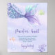 "Eine süße kleine Meerjungfrau ist auf dem Weg", "Unter dem Meer" Thema Mädchen Dusche Party. Die lila und blauen Aquarelltöne mit spielerischem Meerjungfrau-Schwanz, Clownfisch und Korallen.