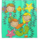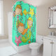 Hübscher und niedlicher Duschvorhang für Mädchen oder sogar Erwachsene, die Meerjungfrauen Liebe, mit einem hellen Minzgrün Hintergrund mit drei Strichmännchen-Meerjungfrauen, Algen, Blume, Seestern, einem Taxi und Fisch!