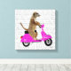 Meerkat auf rosa Moped Leinwanddruck