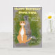 Fügen Sie Text, vor und innen Geburtstagskarte, mit einem Meerkat, und einer Katze hinzu. Vollständig anpassbar auf jeder Seite. Machen Sie es zu einem persönlichen Gruß.