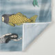 Diese Abbildung zeigt eine Reihe von Merfolk aus der ganzen Welt. Zu den dargestellten Wesen zählen eine blonde Haar haarige nordeuropäische Meerjungfrau, ein rot gekappter männlicher Merrow irischer Lore, eine blau-gekleidete dänische Havanna, eine halskettentragende Bonito-Jungfrau aus den Traditionen des sa'a-Volkes der Salomonen, ein menschgesichtsloser japanischer Ningyo und ein rot-mit Augen Kaaiman Südafrikas.