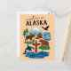 Embark on a journey to the Last Frontier with this charming 'Meet Me in Alaska' postcard, featuring a delightful collection of Alaska icons in a fun doodle style! This whimsical illustrated postcard captures the state's incredible wildlife, majestic mountains, and rich indigenous culture. It showcases everything from a magnificent moose and a soaring eagle to a powerful orca, a traditional totem pole, and a cozy cabin nestled in the wilderness. The playful illustrations and clear lettering make this postcard a unique and memorable tribute to Alaska, USA.