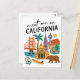 Catch some California vibes with this vibrant 'Meet Me in California' postcard, featuring a delightful collection of California icons in a fun doodle style! This whimsical illustrated postcard captures the diverse spirit of the Golden State, showcasing everything from the iconic Golden Gate Bridge and sunny palm trees to city skylines, the state capitol, and a classic surfboard ready for the waves. The playful illustrations and clear lettering make this postcard a unique and memorable tribute to California, USA.