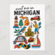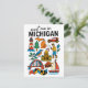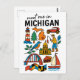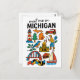 Plan your next visit to the Great Lakes State with this charming 'Meet Me in Michigan' postcard, featuring a delightful collection of Michigan icons in a fun doodle style! This whimsical illustrated postcard captures the unique blend of industrial heritage, natural beauty, and local delights, showcasing everything from a classic red lighthouse and Michigan's outline with a heart, to an antique car, a fisherman, the State Capitol, and a delicious cherry pie. The playful illustrations and clear lettering make this postcard a unique and memorable tribute to Michigan, USA.