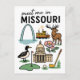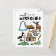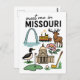 Explore the 'Show Me State' with this charming 'Meet Me in Missouri' postcard, featuring a delightful collection of Missouri icons in a fun doodle style! This whimsical illustrated postcard captures the state's famous landmarks, diverse wildlife, and popular pastimes. It showcases everything from the iconic Gateway Arch and a classic riverboat to the majestic State Capitol building, an elegant elk, and a nod to golfing in the beautiful Missouri landscape. The playful illustrations and clear lettering make this postcard a unique and memorable tribute to Missouri, USA.