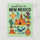 Embark on a Southwestern adventure with this charming 'Meet Me in New Mexico' postcard, featuring a delightful collection of New Mexico icons in a fun doodle style! This whimsical illustrated postcard captures the unique blend of Native American and Spanish heritage, desert landscapes, and vibrant traditions. It showcases everything from the sacred Zia sun symbol and a traditional adobe mission, to a graceful roadrunner, a colorful hot air balloon, and a classic cactus. The playful illustrations and clear lettering make this postcard a unique and memorable tribute to New Mexico, USA.