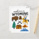 Saddle up for adventure with this charming 'Meet Me in Wyoming' postcard, featuring a delightful collection of Wyoming icons in a fun doodle style! This whimsical illustrated postcard captures the rugged spirit of the Cowboy State, showcasing everything from a majestic bison and the iconic Devils Tower to a brave cowboy on horseback, a cozy log cabin, and picturesque mountains. The playful illustrations and clear lettering make this postcard a unique and memorable tribute to Wyoming, USA.