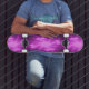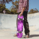 Dieses phantastische Skateboard weist ein Fraktal-Image auf, das einem zentralen Ball mit lila, hellen Mega-Blitz ähnelt, der in alle Richtungen ausgeschnitten wird.