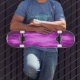 Dieses phantastische Skateboard weist ein Fraktal-Image auf, das einem zentralen Ball mit lila, hellen Mega-Blitz ähnelt, der in alle Richtungen ausgeschnitten wird.