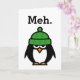 Meh Funny Aathy Zitat Pinguin Grußkarte. Niedliche Pinguin-Abbildung mit grünem Hut. Comische Designs mit humorvoll apathischem Sprichwort / Meme-Ausdruck. Geeky Card Idee für ihn und sie. Unabhängig Einstellung / es ist mir egal ob Witz. Unglaublich witzig Büro Humor für Geek Mitarbeiter, Freund, Familie, Mitarbeiter, Chef etc.