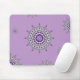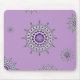 Dieses silberne und lila, konzentrische Zirkel-Design, inspiriert von indischen Techniken und Kostümen aus japanischem Anime, weist Schichten mit Lotusblättern, Blätter, Paisley und einem Zierrad um sich herum auf.