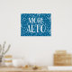 Ein lustiges und fröhliches Mehr-Alto-Design mit einem blauen Hintergrund mit weißem Text und musikalischer Notation.