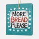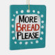 "Mehr Brot bitte" ist ein lustiges Textdesign mit weißer Akzent-Form, umgeben von weißen, weißlichen, weißlichen, weißgestrichenen Punkten.