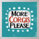 "More Corgis Bitte" ist ein niedliches Textdesign in blau mit schwarzem und rotem Text, mit weißer Akzent-Form und weißen, texturierten weißen, weißlichen, weißlichen Punkten, die ihn umgeben.