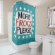 "More Frogs Bitte" ist ein lustiges Textdesign mit einer weißen Akzent-Form, umgeben von weißen, weißlichen, weißlichen, weißlichen, texturierten Punkten.