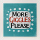 "More Giggles Bitte" ist ein lustiges Textdesign mit weißer Akzent-Form, umgeben von weißen, weißlichen, weißlichen, weißgestrichenen Punkten.