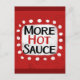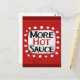 "More Hot Sauce" ist ein niedliches Textdesign in rot mit schwarzem und rotem Text, mit weißer Akzent-Form und weißen, texturierten weißen, weißlichen Punkten, die ihn umgeben.