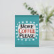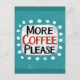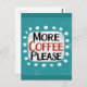 "More Coffee Bitte" ist ein lustiges Textdesign mit weißer Akzent-Form, umgeben von weißen, weißlichen, weißgestrichenen Punkten.