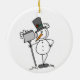 Ein Schneemann mit einem schwarzen Top-Hut und einem roten Text mit dem Aufdruck "Mehr Schnee bitte!" steht vorne und ein Schneemann mit einer Schaufel auf der Rückseite dieses niedlichen Snowman-Urlaubssenschmucks!