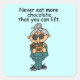 Mildred ist eine grauhaarige ältere Dame, die hübsch gut darin ist, ihre Meinung zu äußern! In diesem niedlichen und lustigen Design verkündet sie: "Essen Sie nie mehr Schokolade, als Sie heben können!"! Das komfortable Design auf T - Shirt, Taschen, Karten, Aufklebern, Magneten, Schlüsselanhängern, Ornamenten, Uhren und vieles mehr für Schokoladenliebhaber!