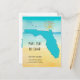 Eine Aquarelllandschaft zeigt eine überdeckte türkisfarbene Florida-Karte und eine abstrakte goldene Sonne, die Familie und Freunden im Norden sagt, dass Sie in den Staat der Sonne gezogen sind. Die lustige Unterschrift "Mehr Sonne! Kein Schnee! Das gibt dir zusätzliche Schutzrechte. Sie können den gesamten Text auf der Vorderseite und auf der Rückseite unserer neuen Postkarte auf der praktischen Personalisierungsvorlage ändern. Dieses Design ist auch auf zwei Größen von Flachkarten mit Umschlag und einem Rücksendeetikett erhältlich.