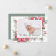 Eine elegante Poinsettia, Heilige und Kiefer-Anordnung umrahmt Ihr Foto vor dieser Weihnachtsankündigung. Es gibt ein zweites Foto auf der Ankündigung zurück mit Geburtsstatistiken und personalisierter Stimmung. Dieses Foto und dieser Text sind mit einem botanischen Muster gerahmt.