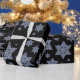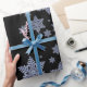 Mehrere Bilder von echter Schneeflocke auf Schwarz Geschenkpapier