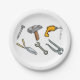 Eine Grafik mit mehreren Handwerkzeugen. Dieses Design wirkt bei diesen Paper-Tellern sehr effektiv