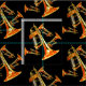 Instrumentalisten und Musiker werden das Multi Trompet Design in Gold und Orangen über Schwarz Liebe oder die Hintergrundfarbe ändern, wie es gewünscht wird.