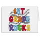 Großer heller Text in den Primärfarben liest "1. Grad schaukelt" gegen einen Hintergrund der schwarzen Blattmusik auf 1. Grad-Felsen Lehrer und Student T - Shirts, Hoodies, Tassen, SchulTaschentaschen, Karten, Aufkleber, Magneten und mehr!