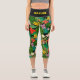 Mehrfarbige Blume & Palm-Blätter auf schwarz Capri Leggings