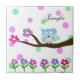 Mehrfarbige Eule des Hippie auf Baum und Blumen Fliese