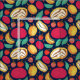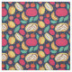 Heller Druck mit mehrfarbigen Früchten auf blauem Hintergrund